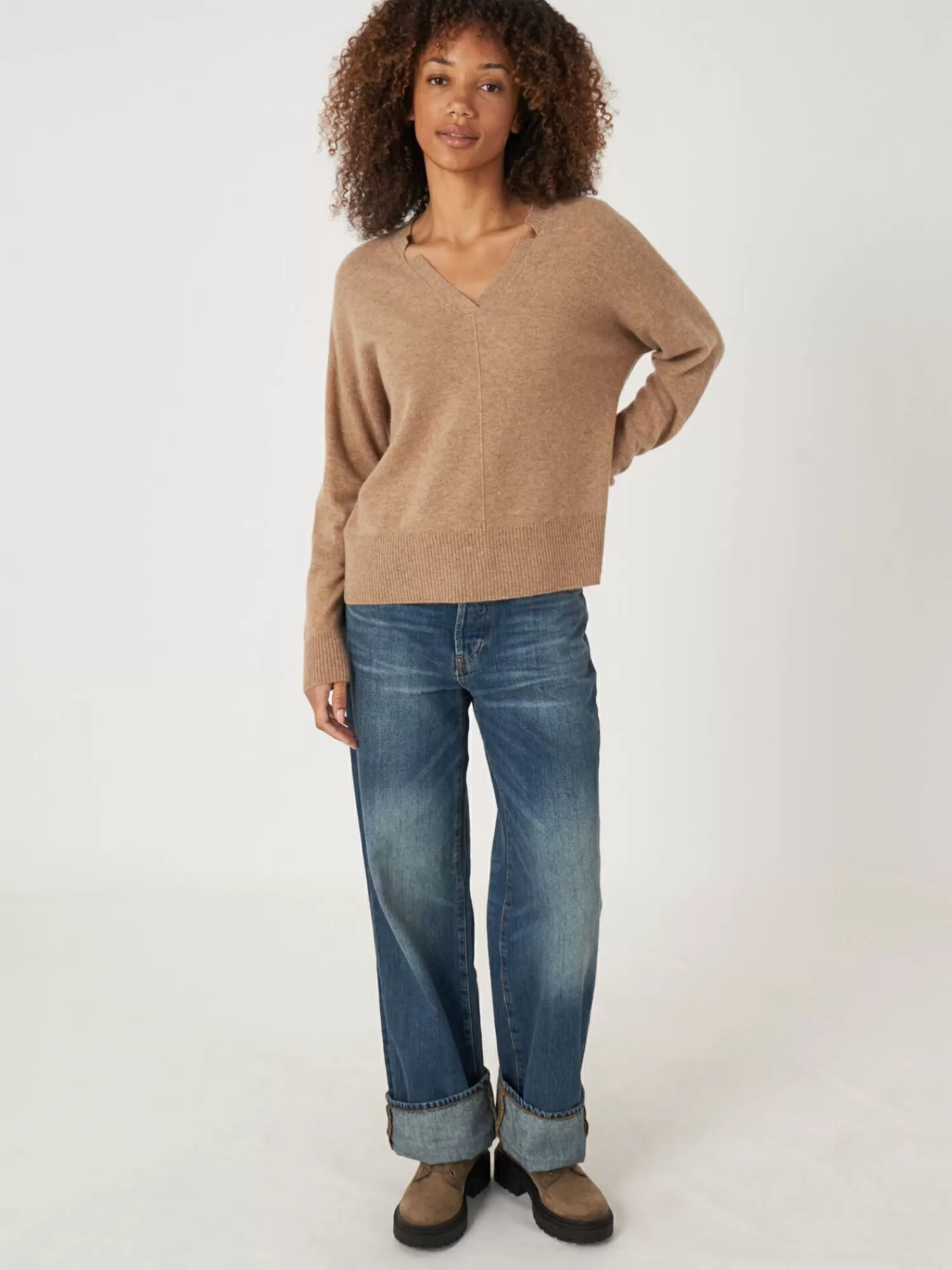 - Diepe V-Hals Met Overlappende Geribde Bies