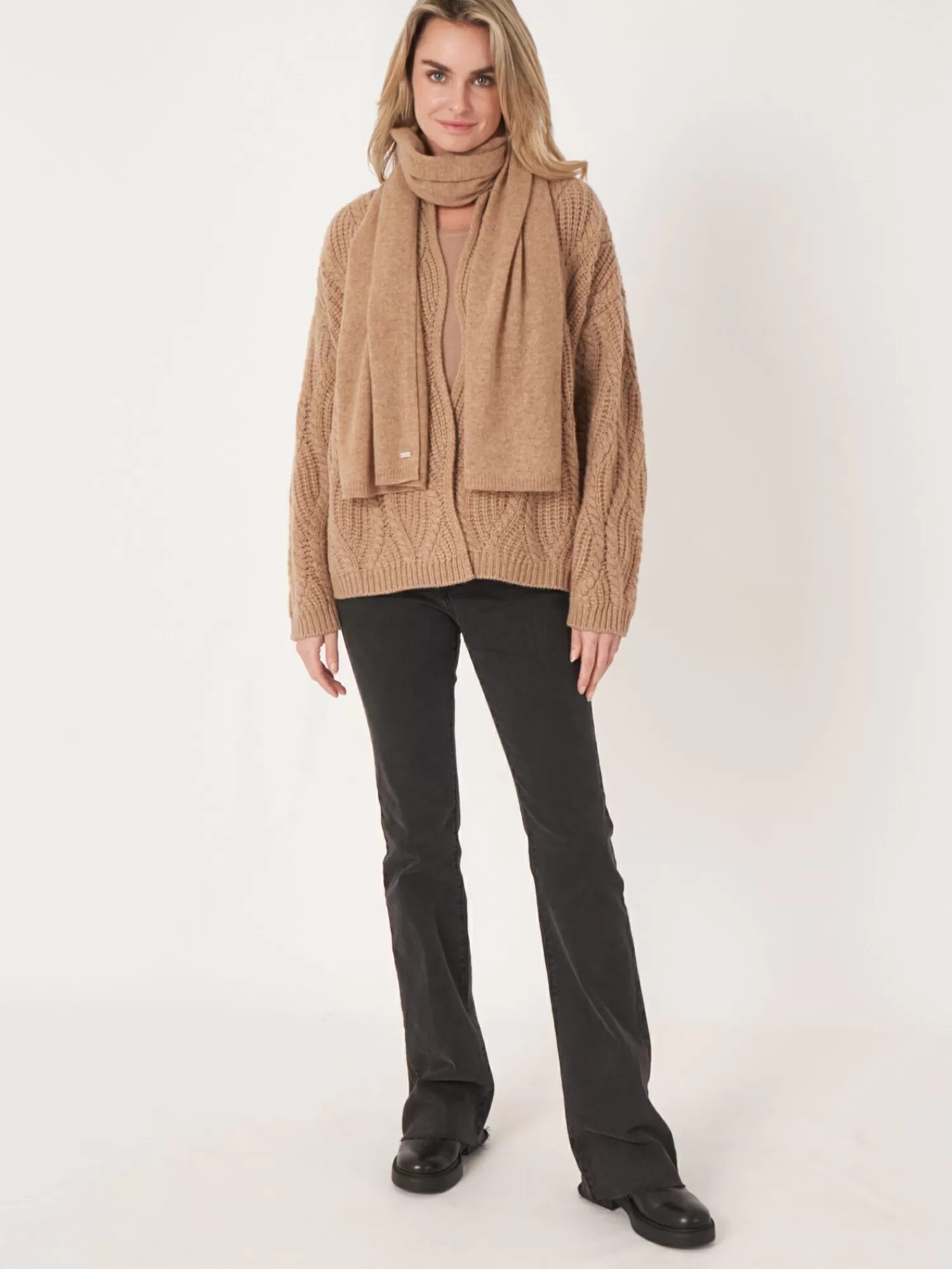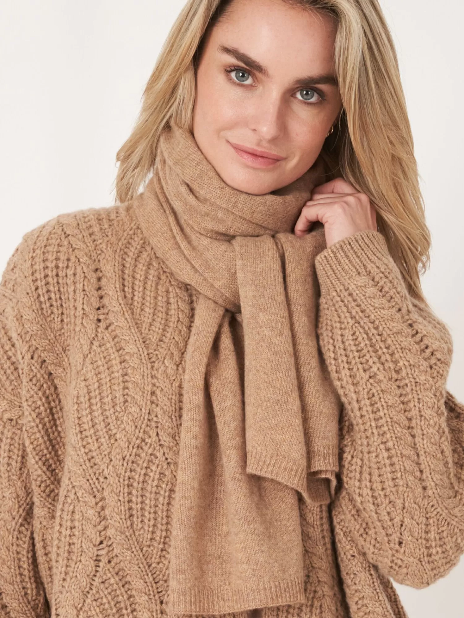 Licht FijngebreidOrganisch Cashmere Gots GecertificeerdGeribde BoordenRechtgebreide SjaalHandwas, Chemisch Reinigen Moge…